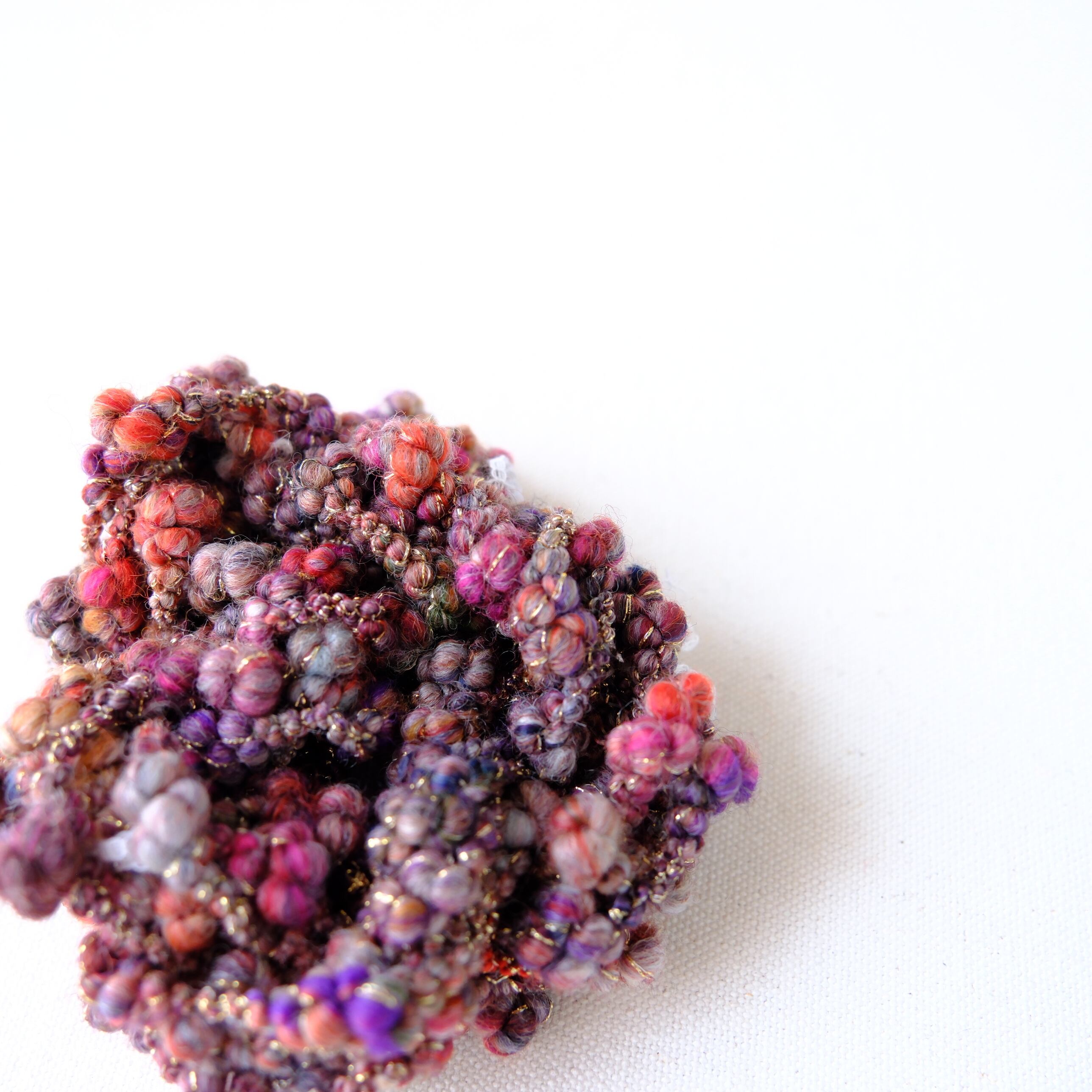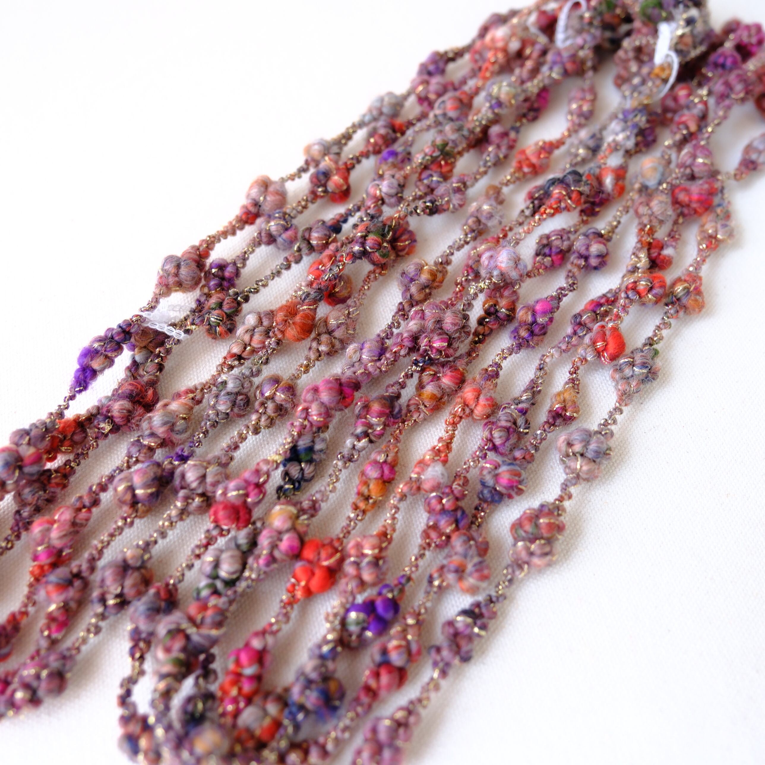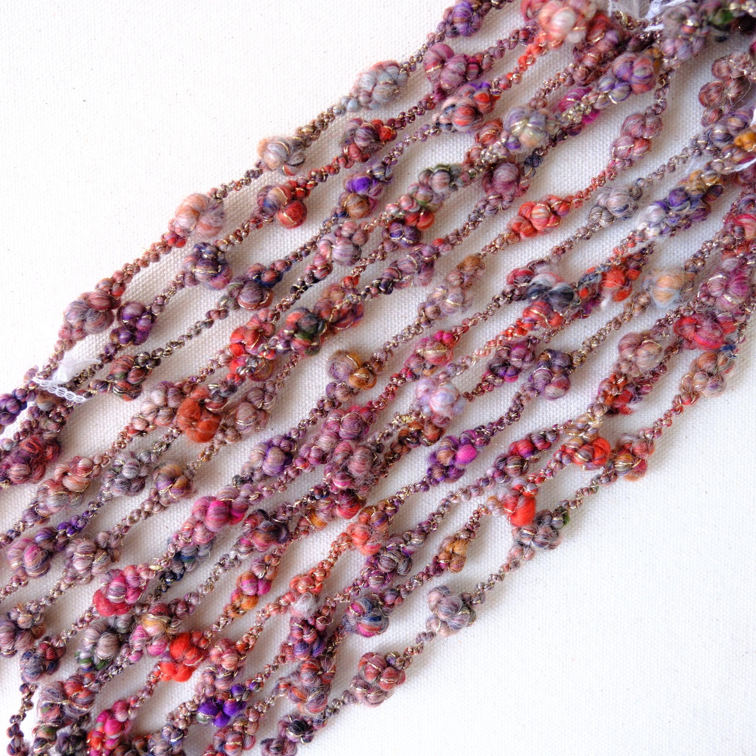 ・アートヤーンは繊細な作りが特徴のひとつとなります。強く引っ張ったり擦ったりすると形が崩れてしまうのでご注意ください