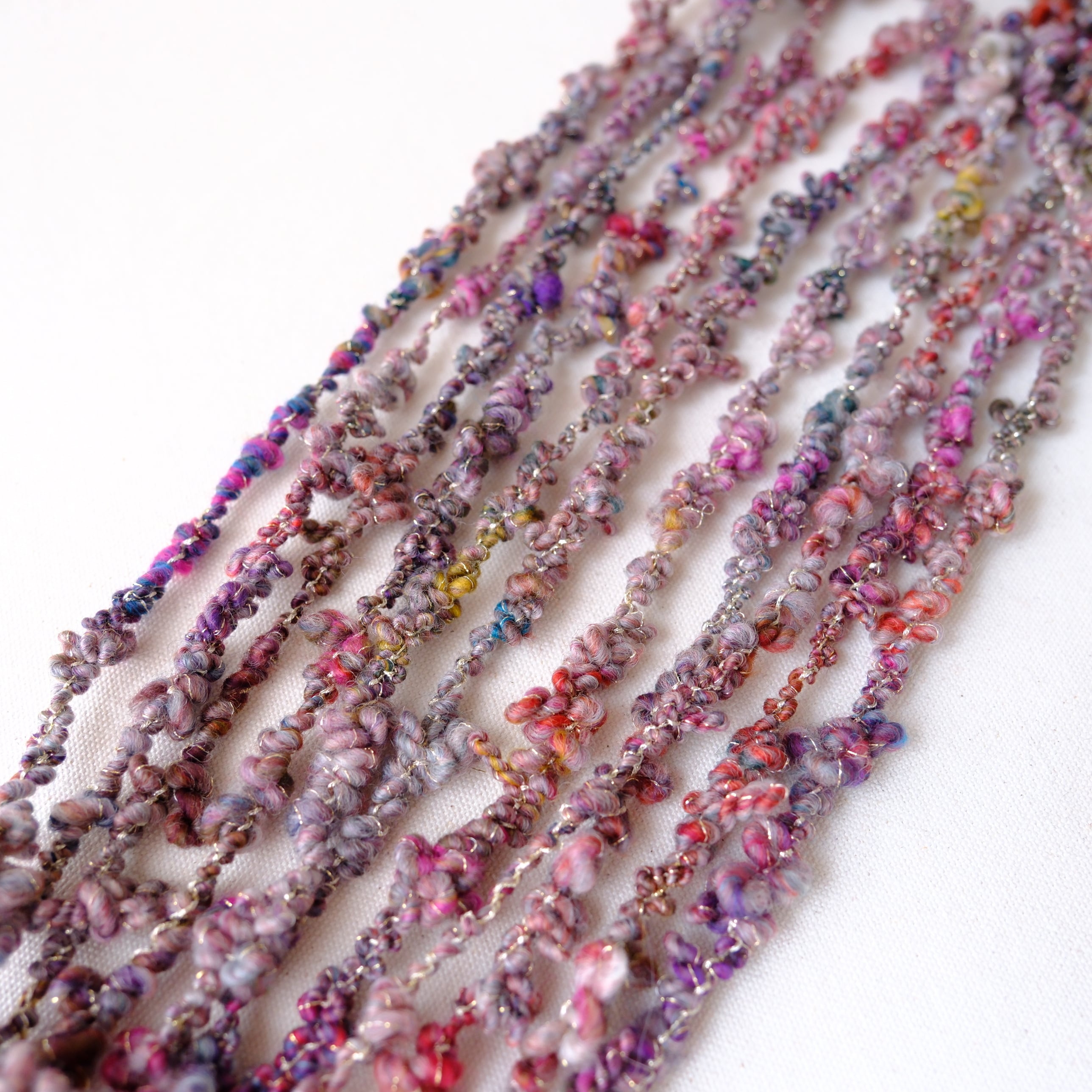 ・アートヤーンは繊細な作りが特徴のひとつとなります。強く引っ張ったり擦ったりすると形が崩れてしまうのでご注意ください