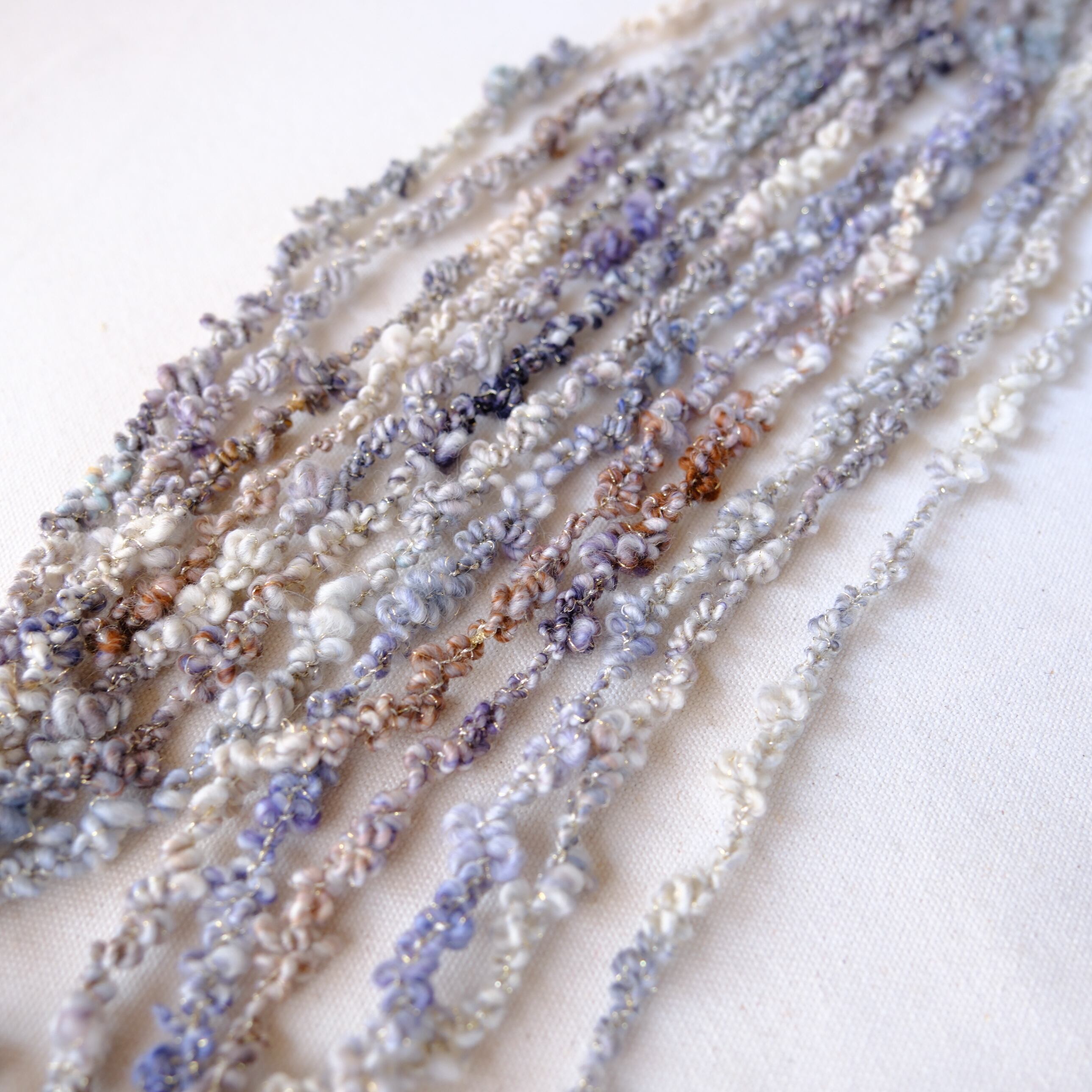 ・アートヤーンは繊細な作りが特徴のひとつとなります。強く引っ張ったり擦ったりすると形が崩れてしまうのでご注意ください