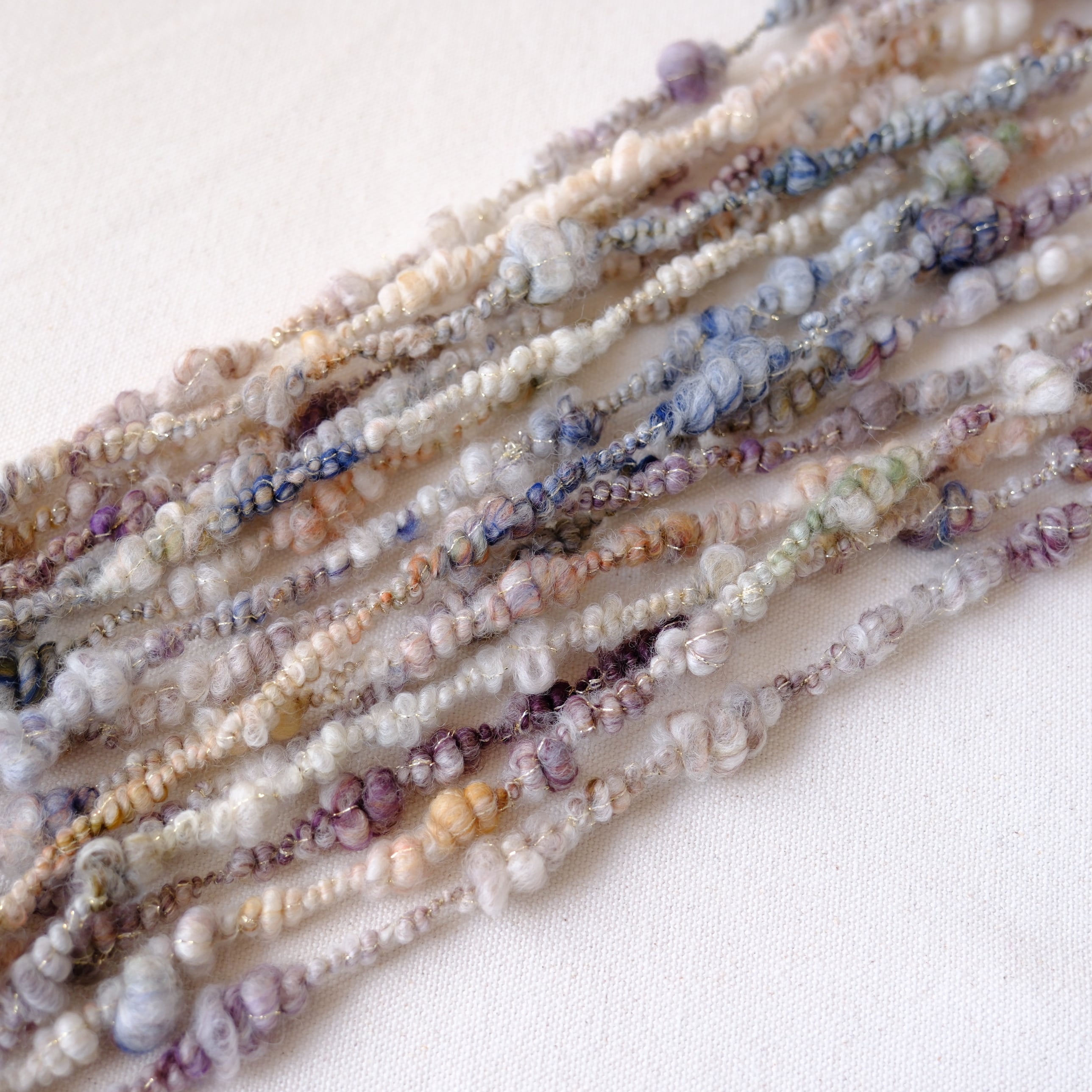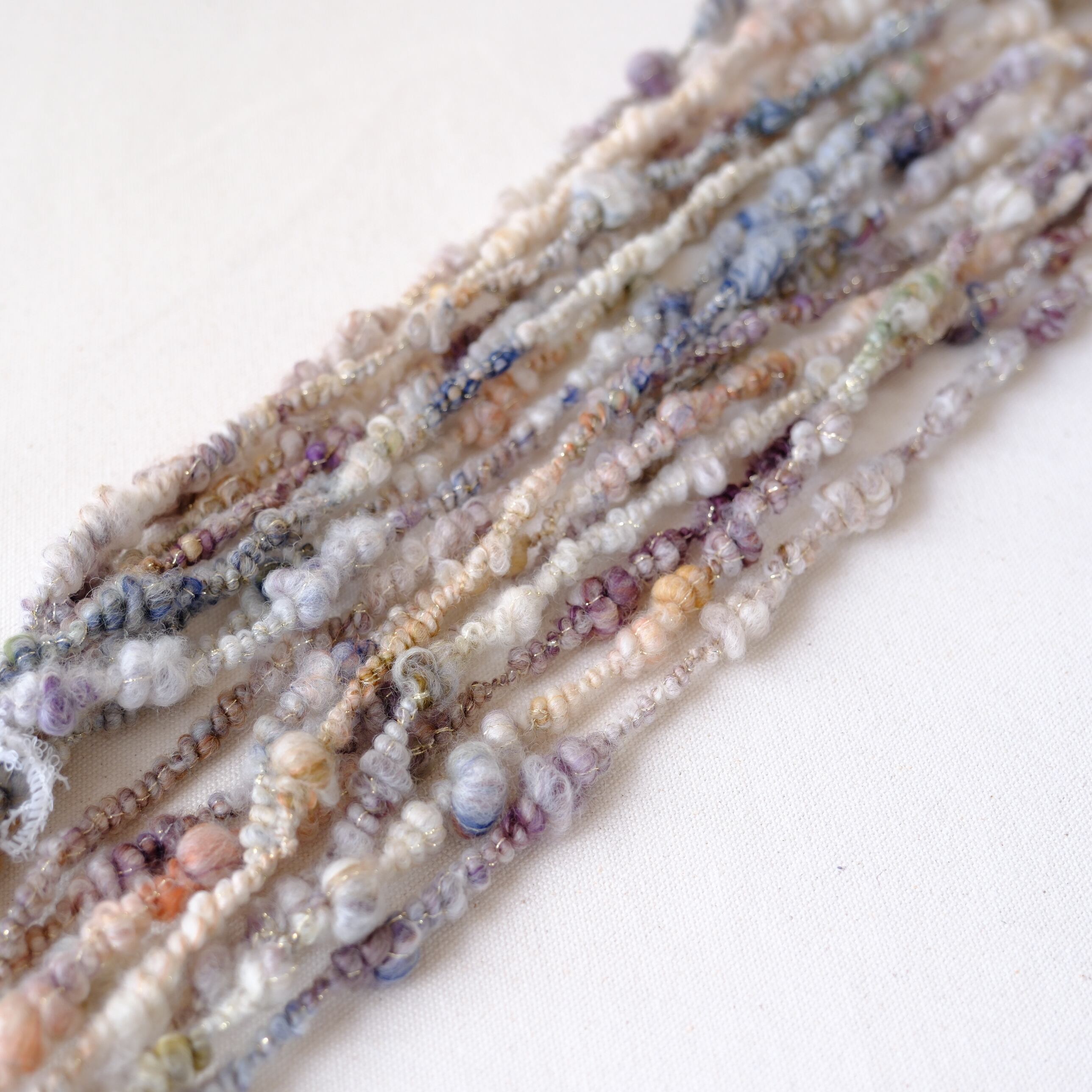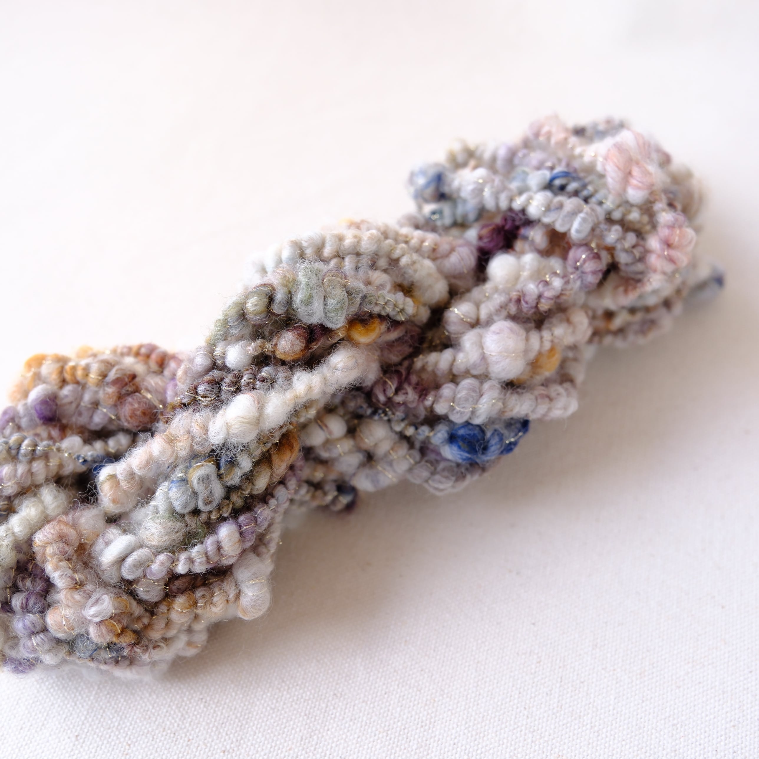 ・アートヤーンは繊細な作りが特徴のひとつとなります。強く引っ張ったり擦ったりすると形が崩れてしまうのでご注意ください