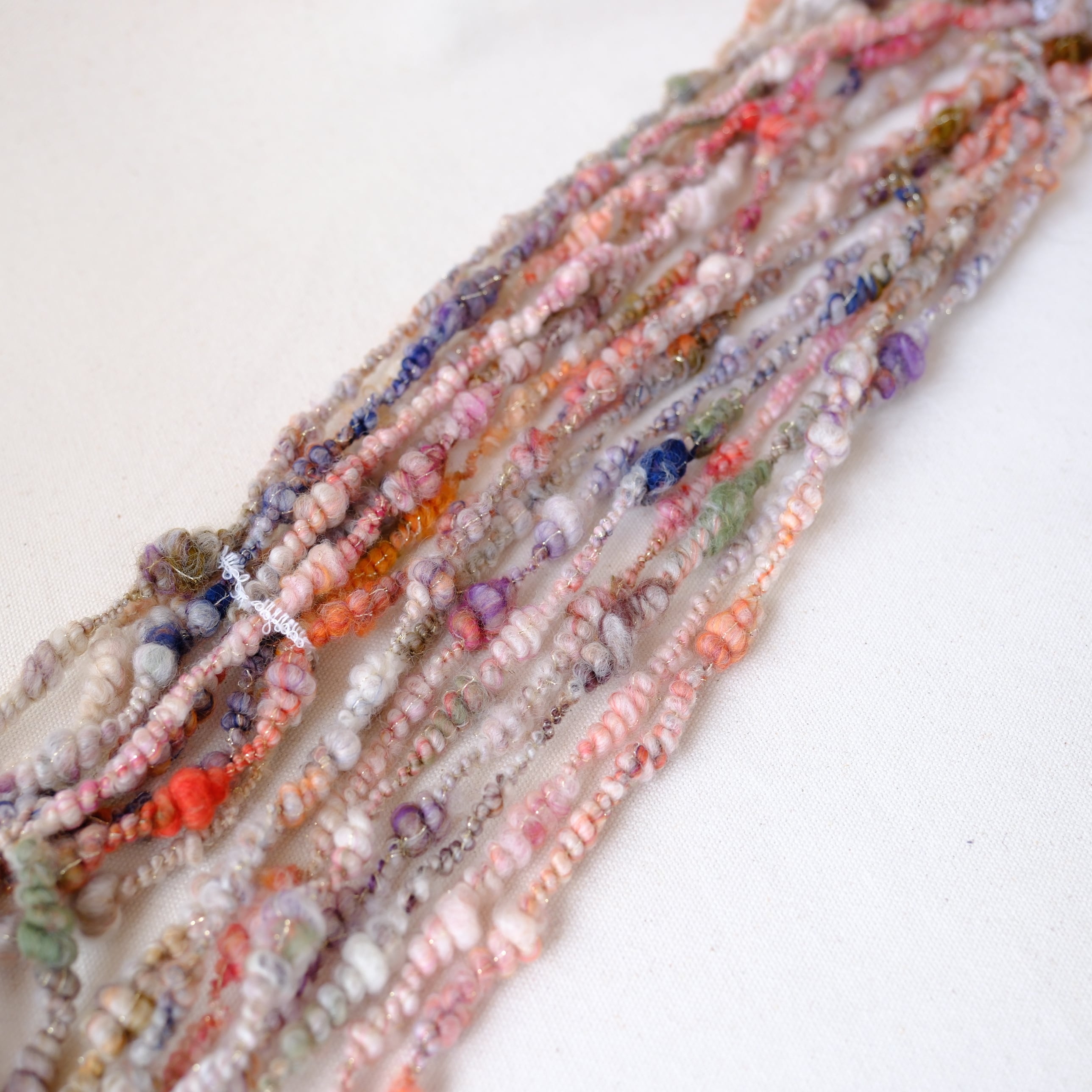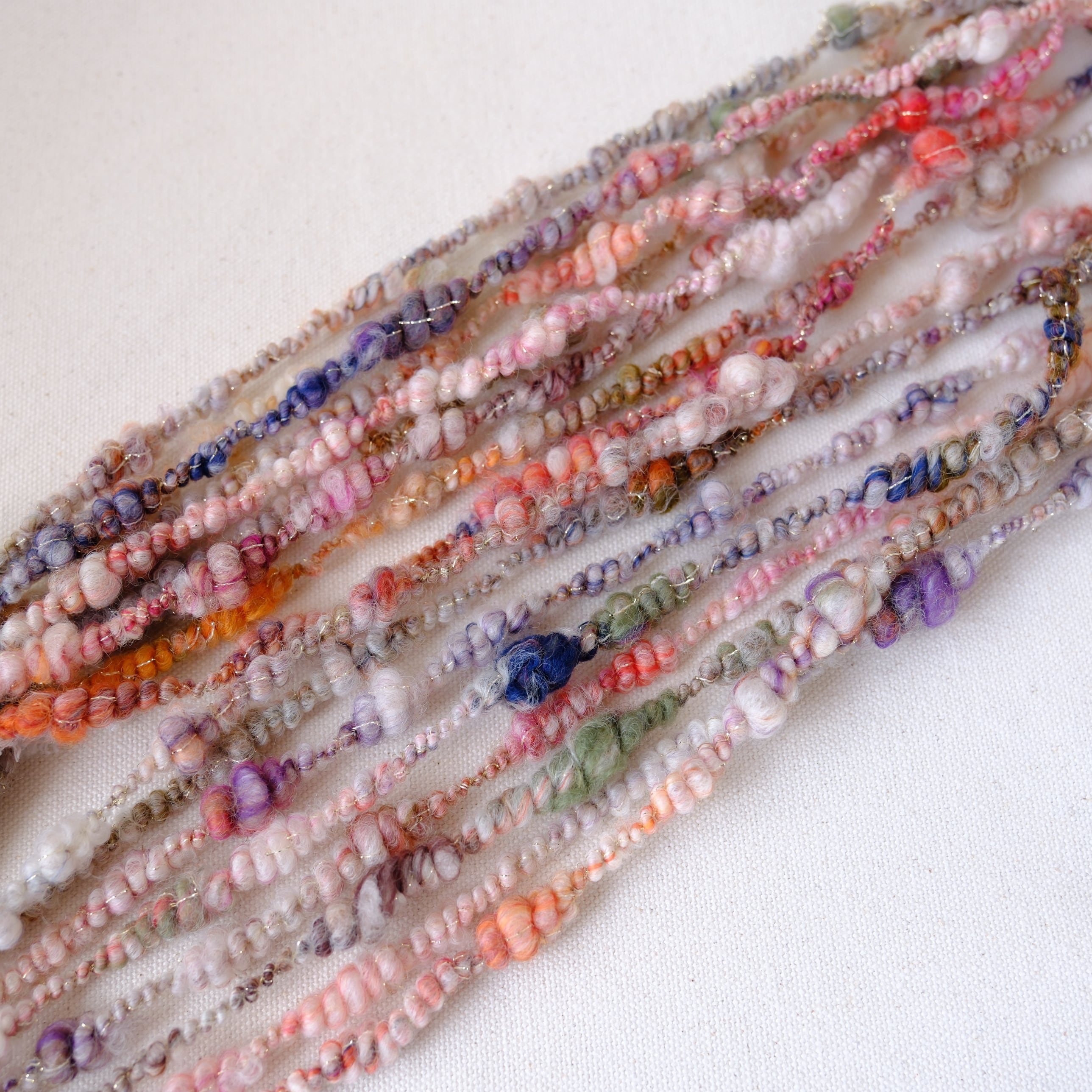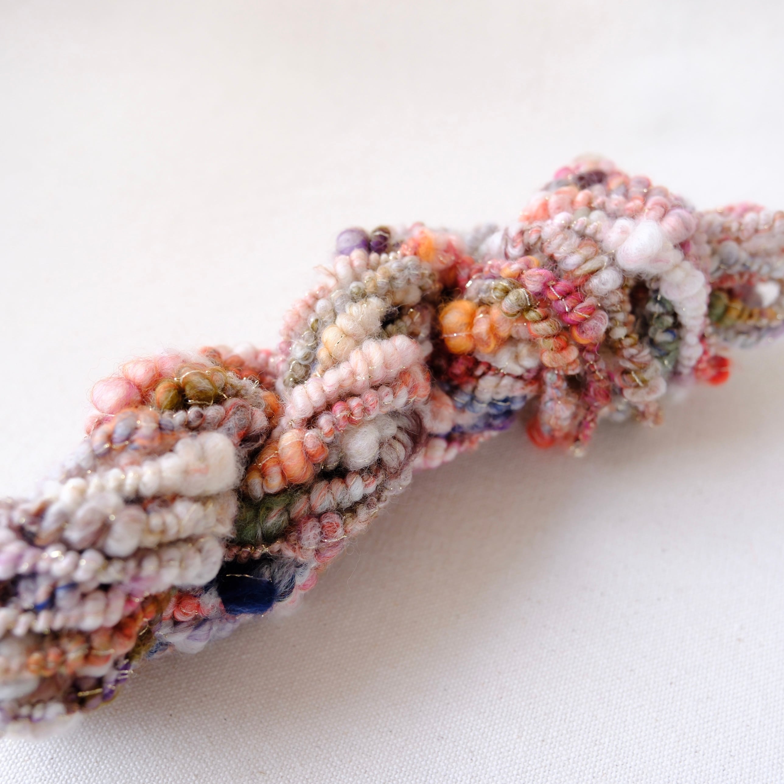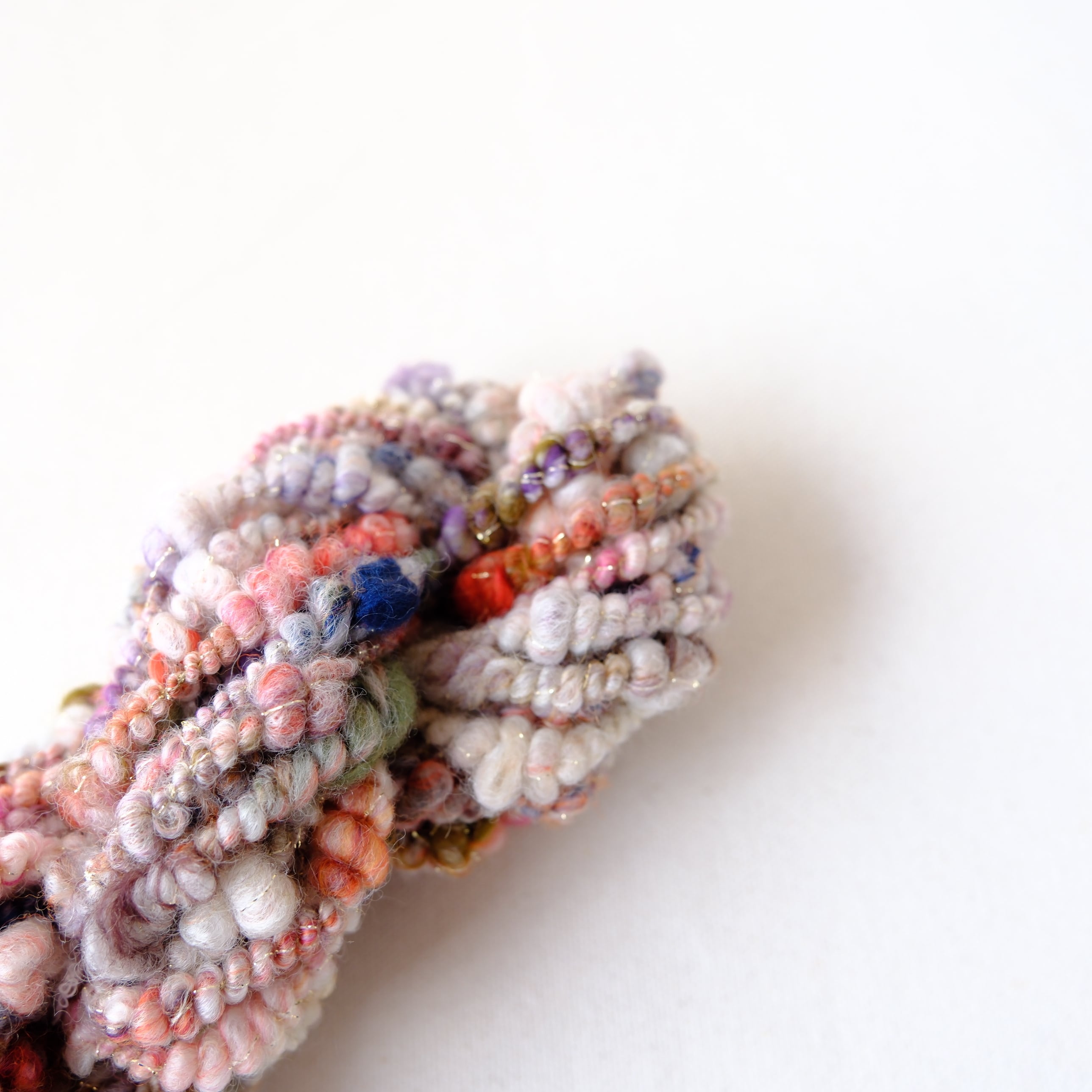 ・アートヤーンは繊細な作りが特徴のひとつとなります。強く引っ張ったり擦ったりすると形が崩れてしまうのでご注意ください