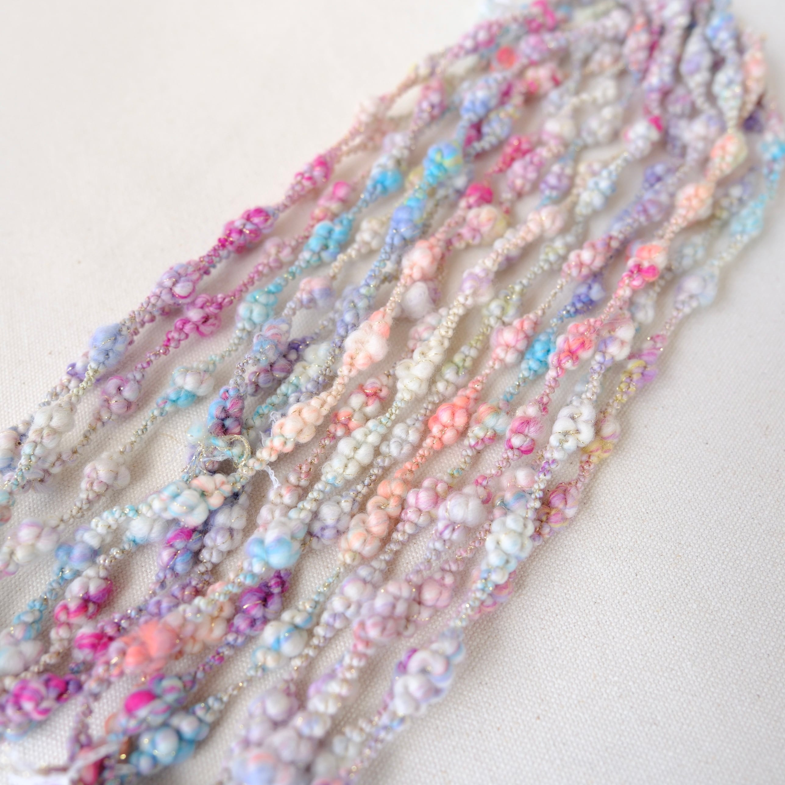 ・アートヤーンは繊細な作りが特徴のひとつとなります。強く引っ張ったり擦ったりすると形が崩れてしまうのでご注意ください