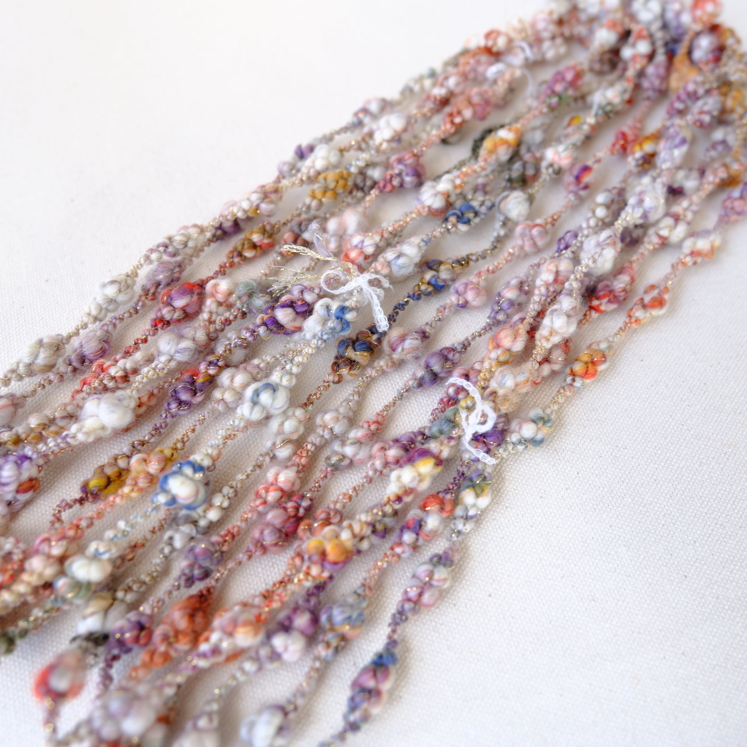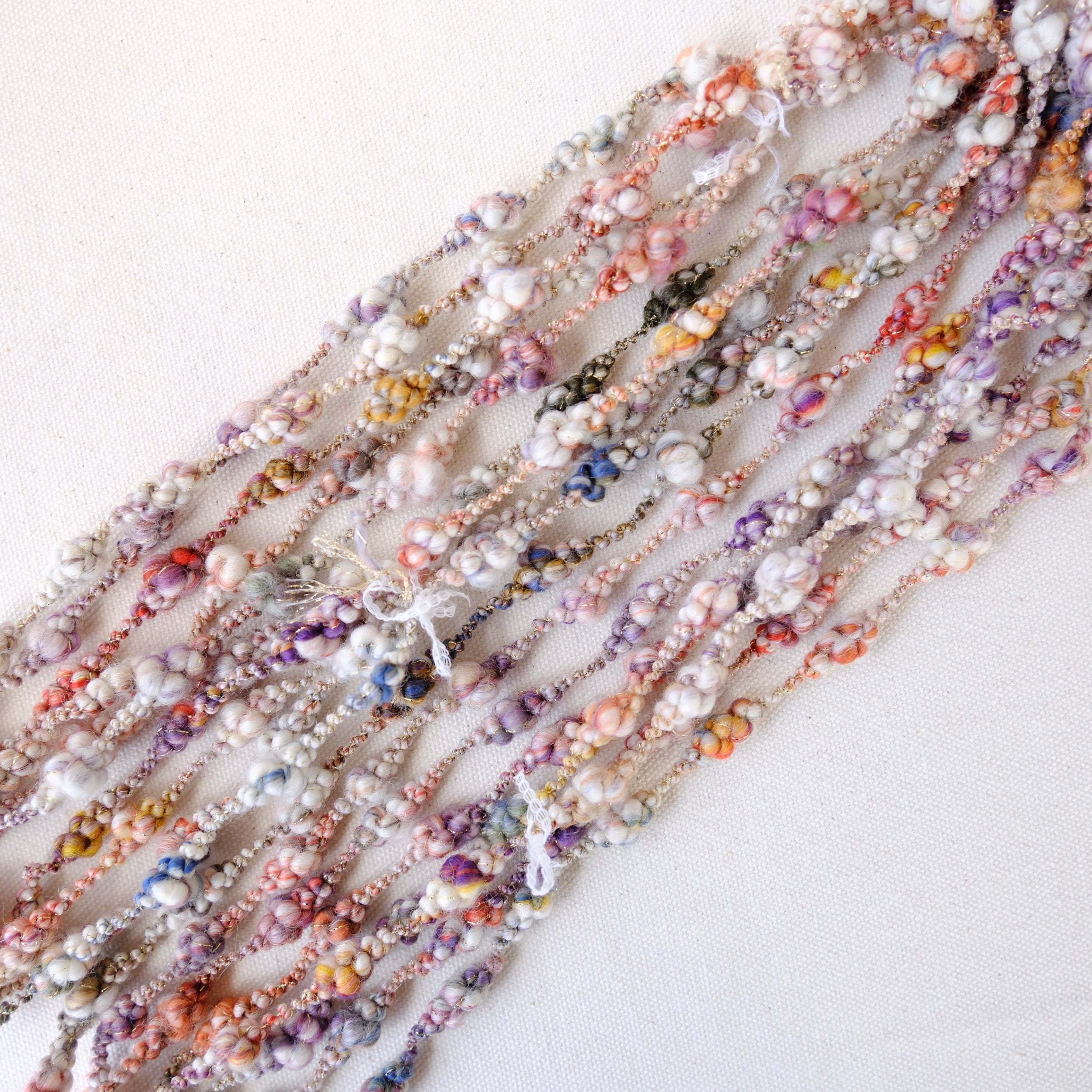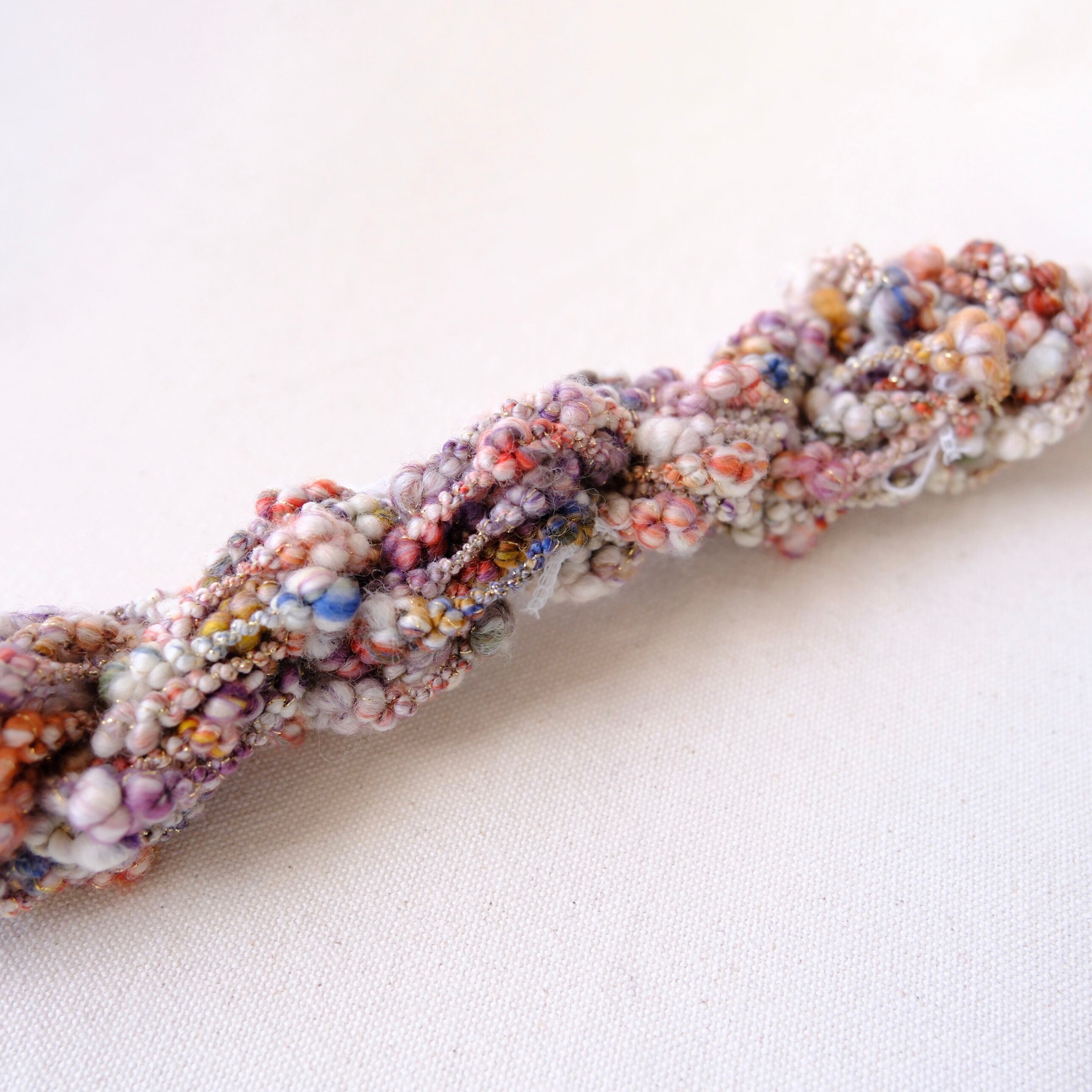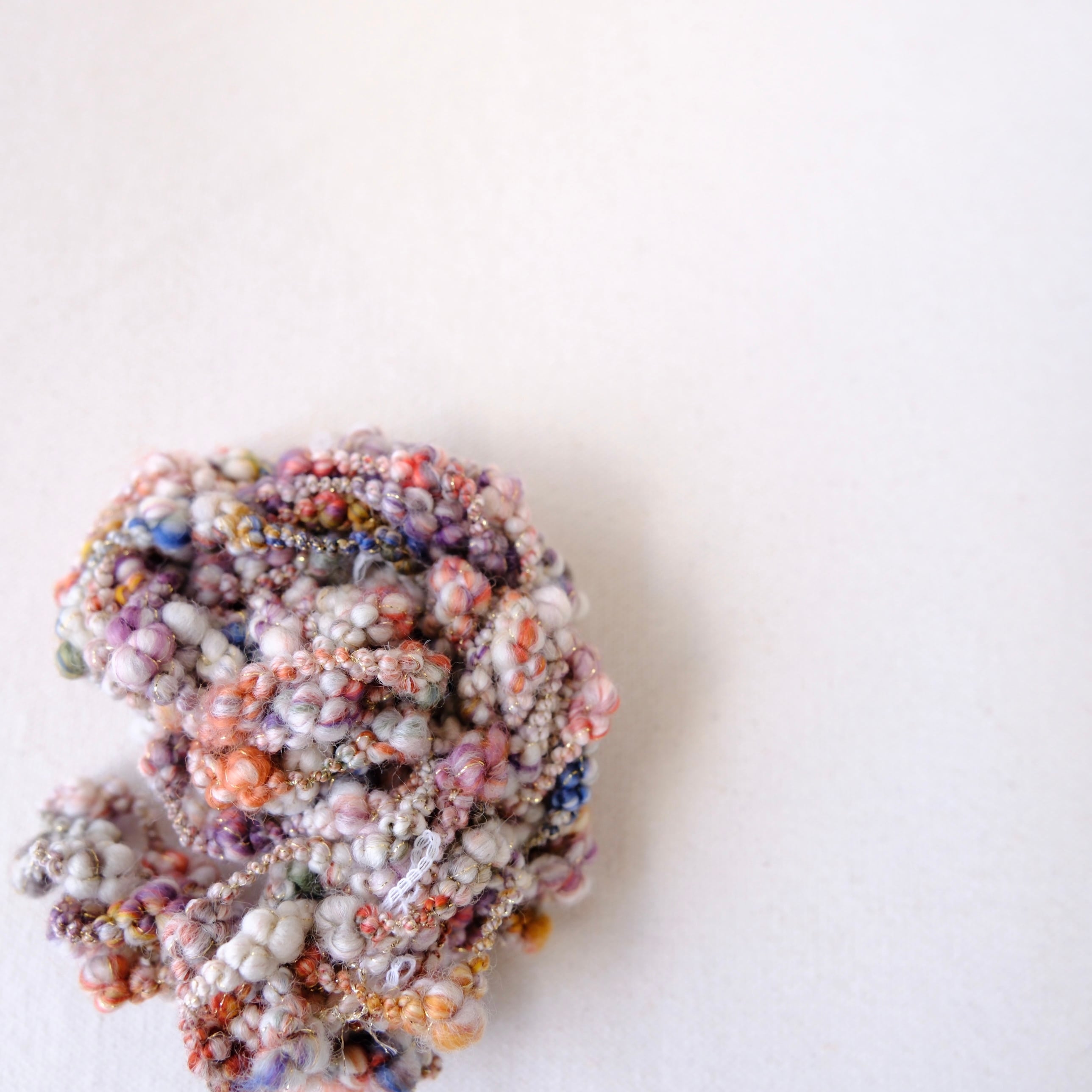 ・アートヤーンは繊細な作りが特徴のひとつとなります。強く引っ張ったり擦ったりすると形が崩れてしまうのでご注意ください