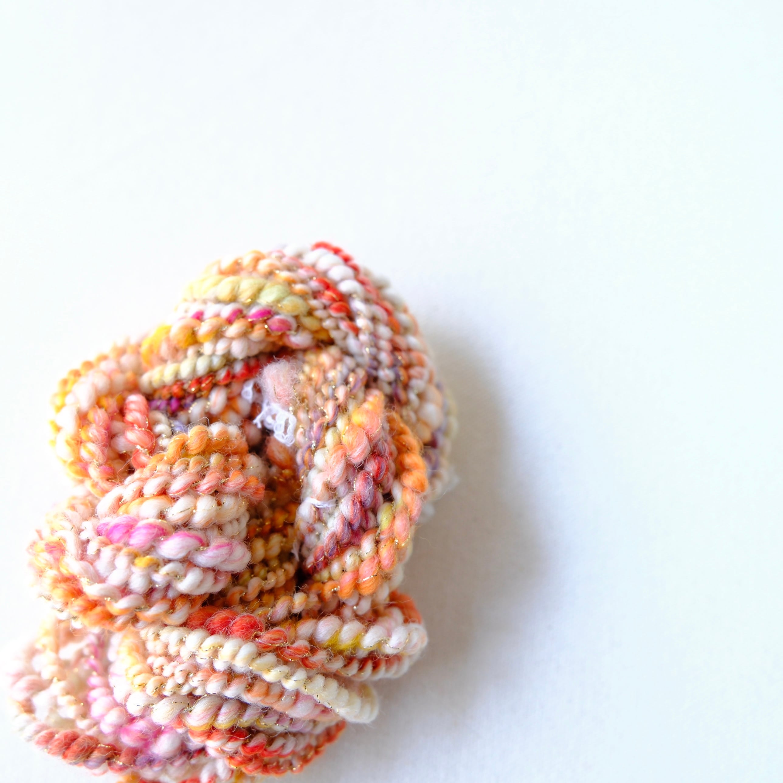・アートヤーンは繊細な作りが特徴のひとつとなります。強く引っ張ったり擦ったりすると形が崩れてしまうのでご注意ください